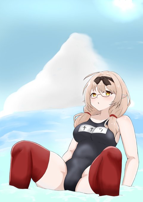 大遅刻しましたが チナツ+スク水ニーソ #ブルアカワンドロ部