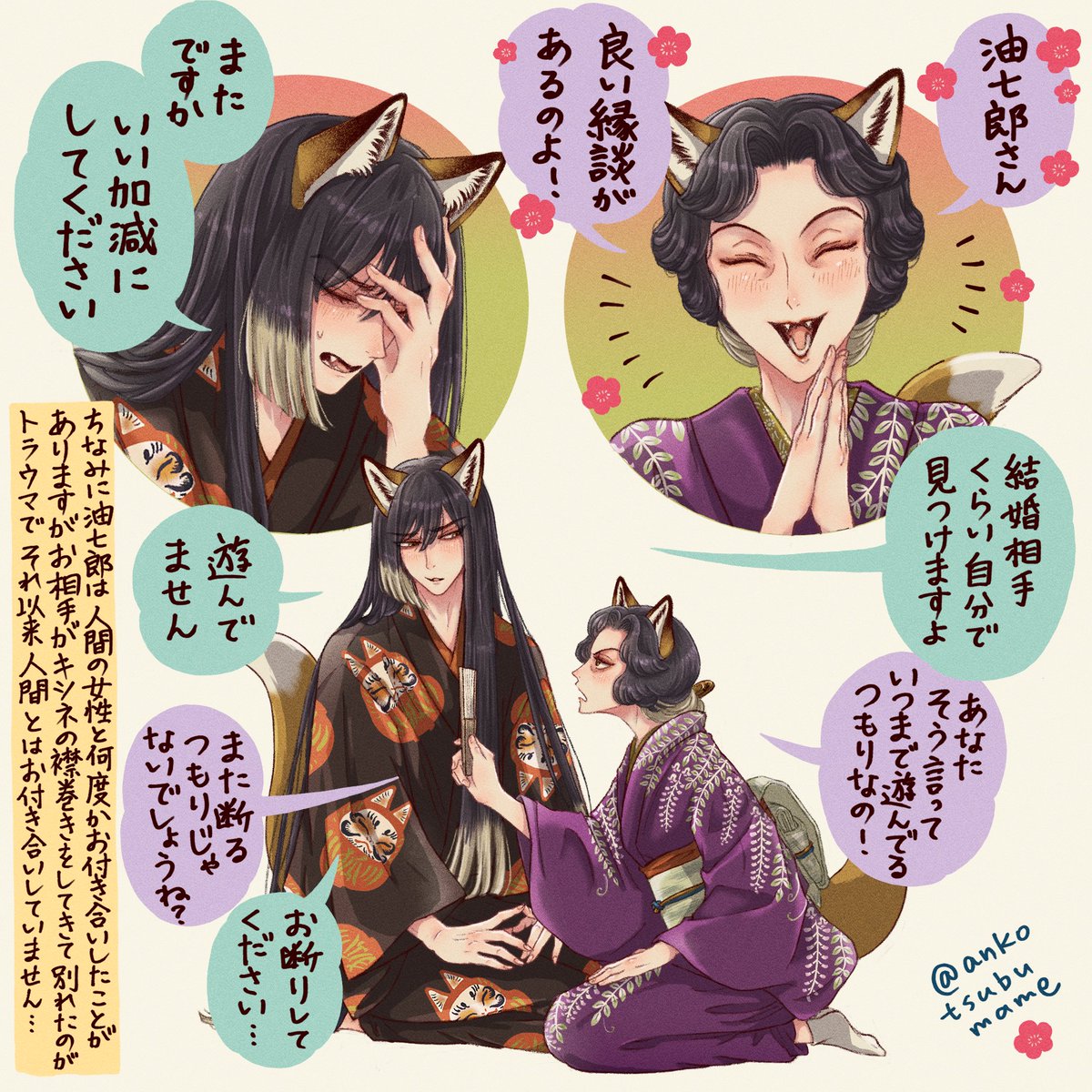 #今月描いた絵を晒そう 1日遅れてしまったけど… 師弟逆転させてみたり、相変わらずうちの狐と狸を描いてました そのうちの4枚です 先月は見て下さりありがとうございました🙏 今月も頑張ります〜!
