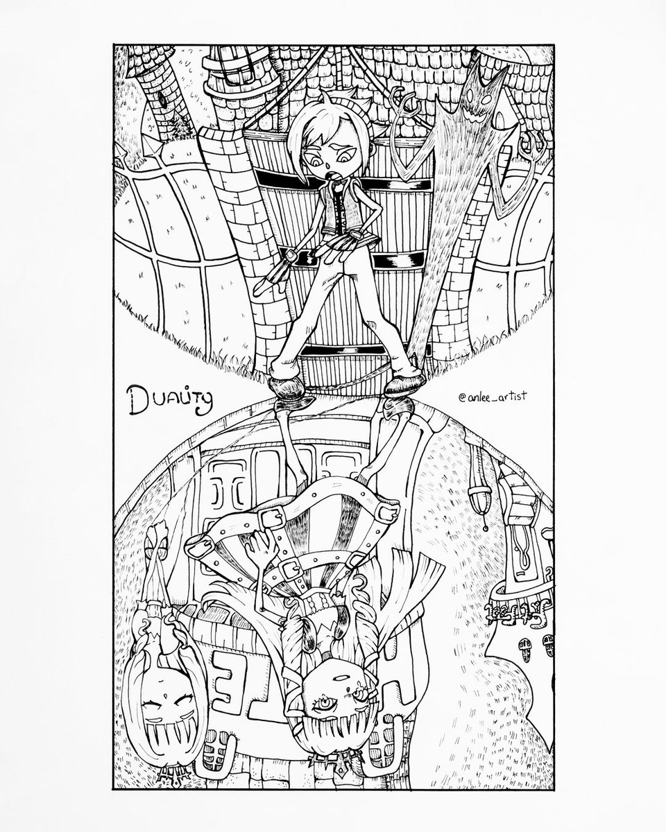 D-1: Duality Super late for inktober. 😇 Anywaaay! This is a fan art of the 2 MCs from relatively unknown PS2 classic, Okage. It's a must-play! #anlee #inktober #inktober2019 #inktoberday1 #artistsontwitter #okage #fanart #art #penandink #artist #illustration #chibi #stylized