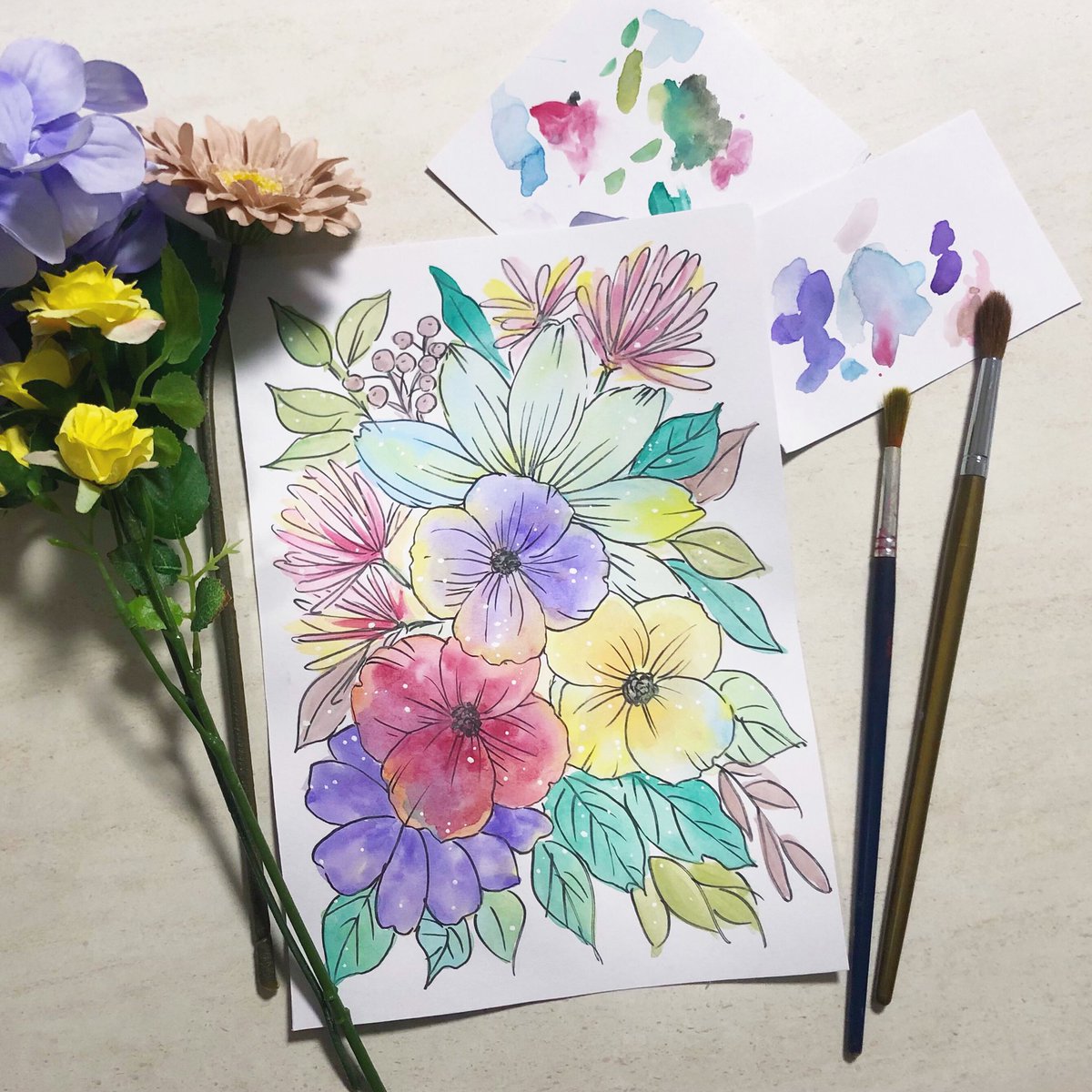 美彩 /水彩絵具・銀箔 薔薇の花を写実的ではなく、あえて水彩絵具のにじみを活かしながら ふんわりとした雰囲気で柔らかく描いてみました✨ #インテリア #アートのある暮らし #花が好きな人と繋がりたい 作品は こちらから✨ artlib.biz/event/archives…