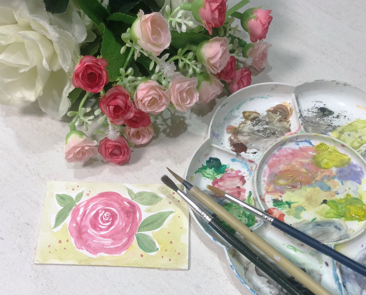 * Rose art * #watercolor おはようございます。 今日から、2月。 週末は薔薇の小さい絵を描いて、額縁に入れてみました。 とても可愛いミニ絵画。 ・ ちょこんと飾ったら、癒されそうですね♪ #水彩画 #絵の具