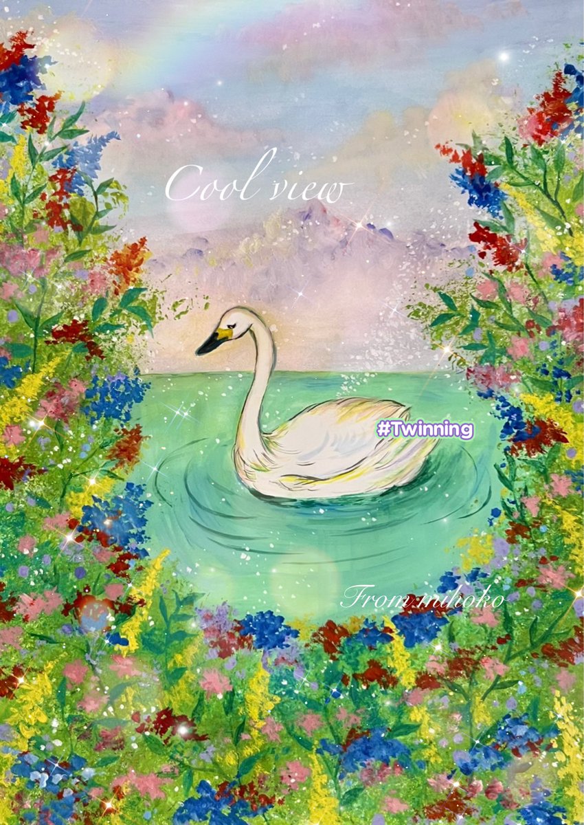 8月になりましたね。 夏バテには気をつけて過ごされますように。 Mihoko #絵描きさんと繋がりたい #アクリル画 #白鳥 #art #絵が好きな人と繋がりたい #painter #絵描き