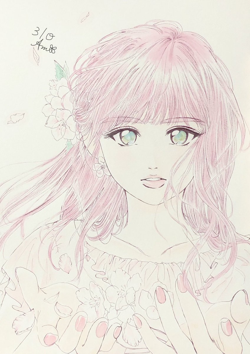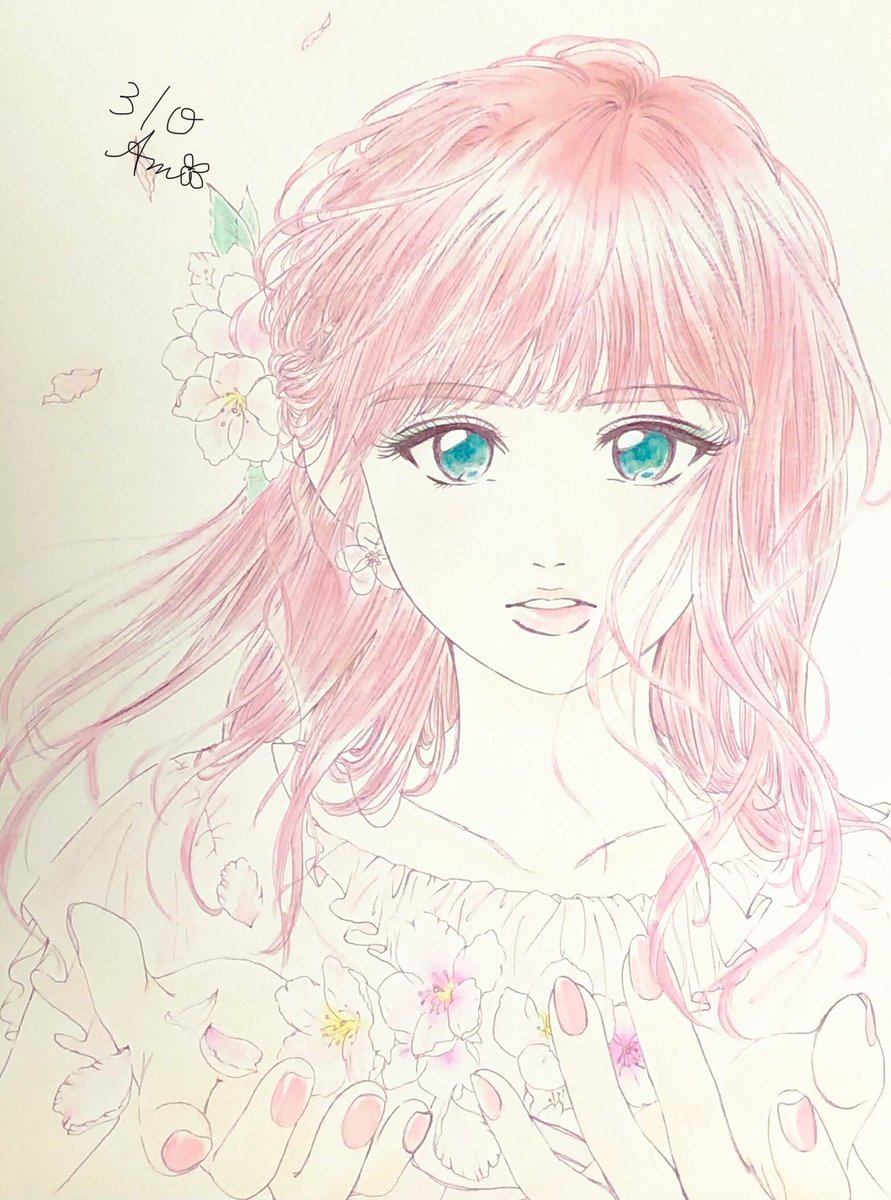 0 8 テーマが季節外れですが… 下塗りからの変遷🎨 (明度がバラバラですみません💦) #イラスト #オリジナルイラスト #illustration #さくら #水彩色鉛筆 22/08/16 20:25