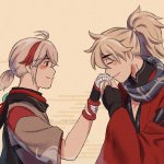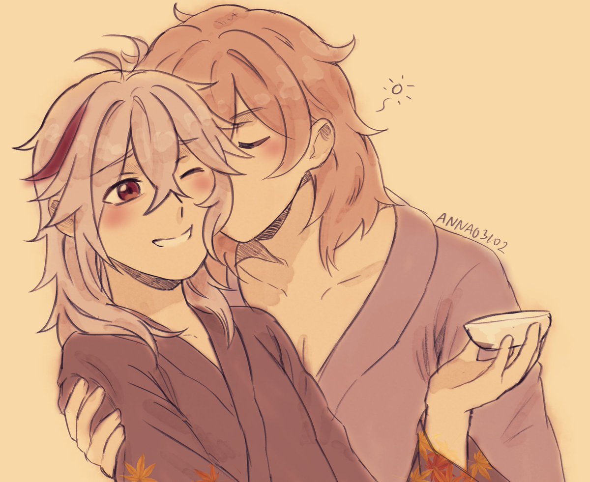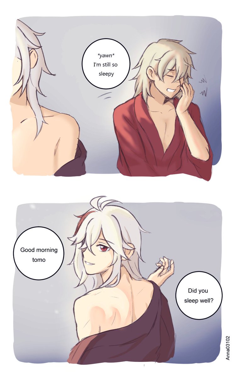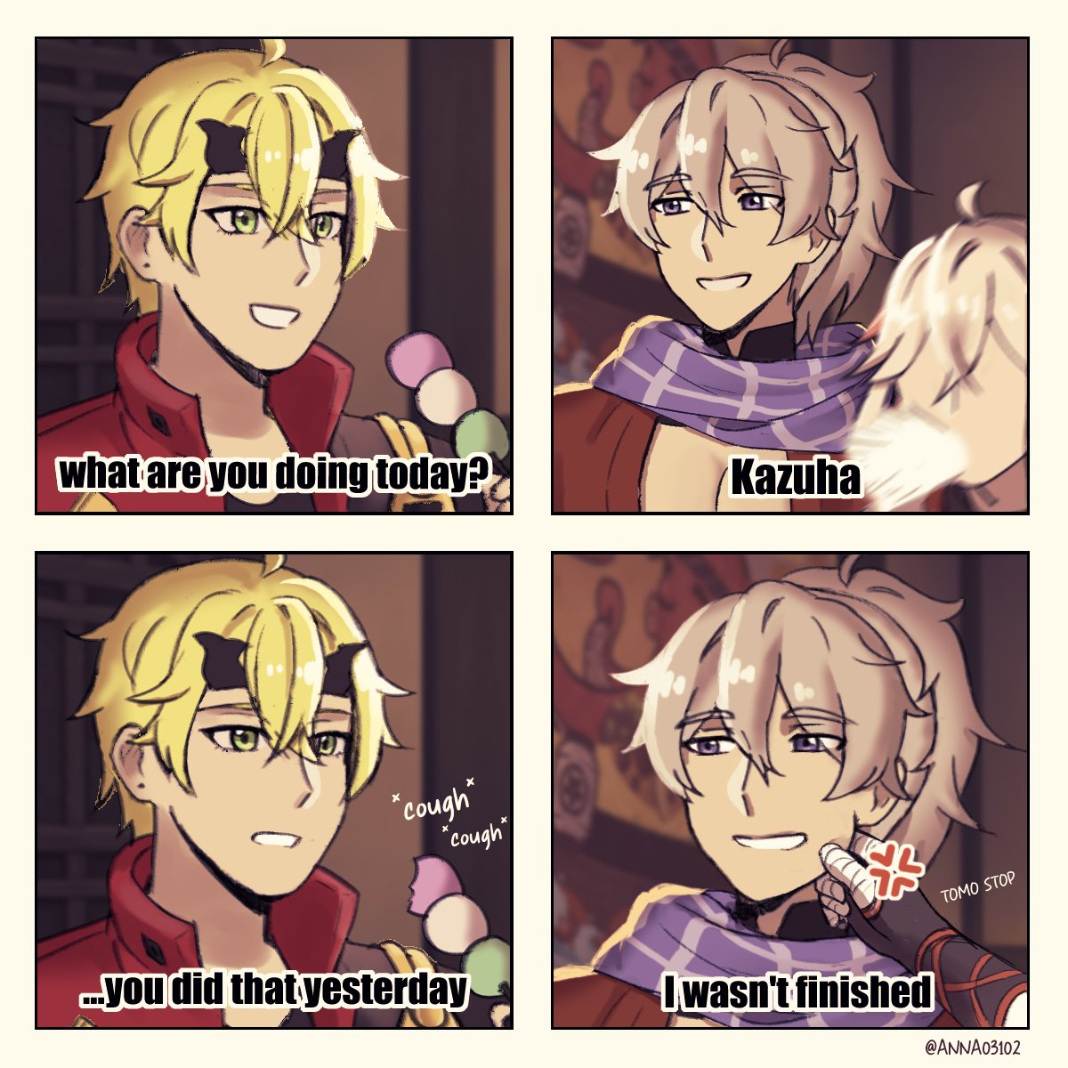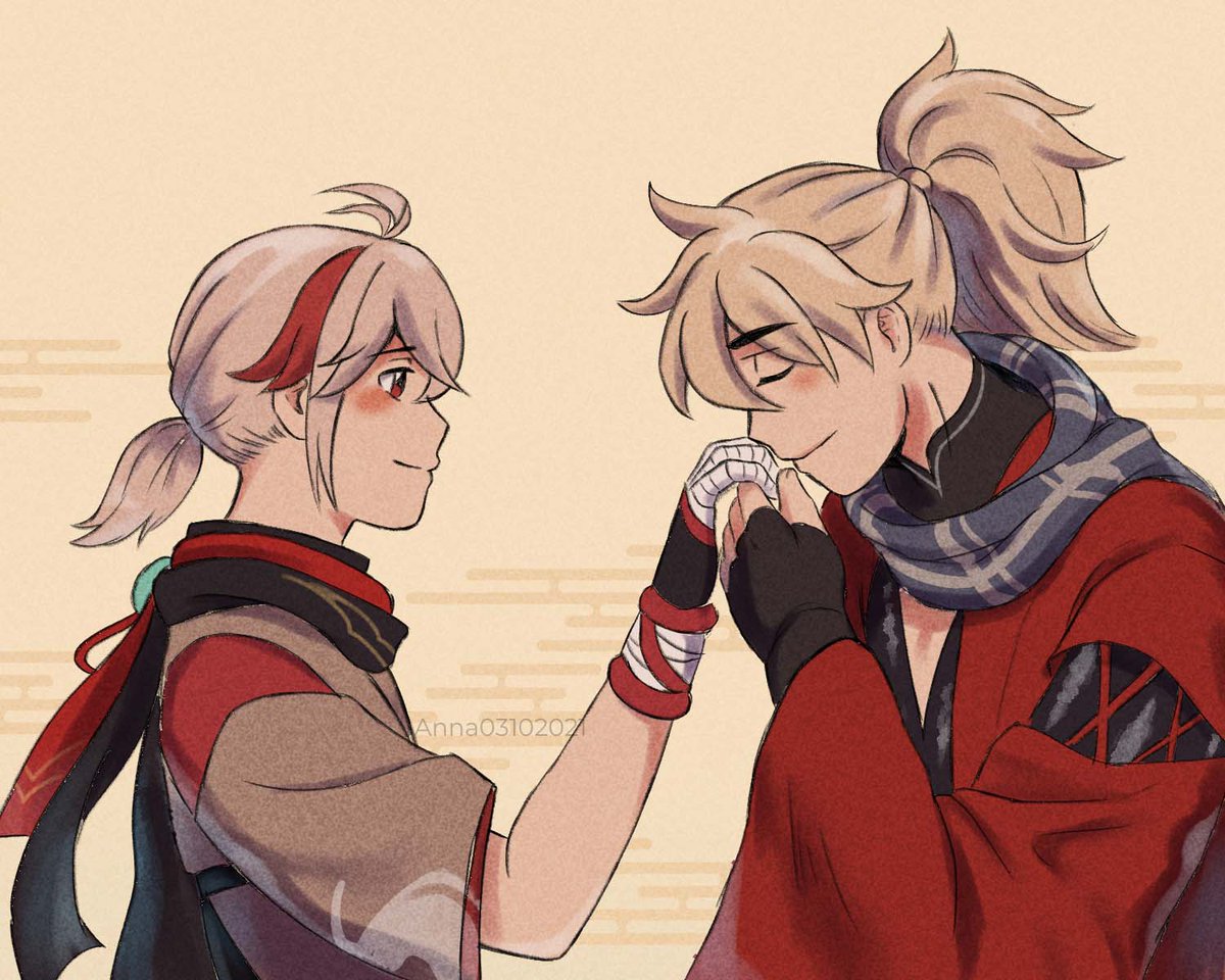 Day 6 -「赤い糸」 "No matter how many times I loved you, No matter how many times I resented you, This tightly bound thread gently ties me to you" . I hope im not too late hshshjk @tomozuha_week #tomozuhaweek2021 #Kazuha #kazuhasfriend #tomokazu #tomozuha