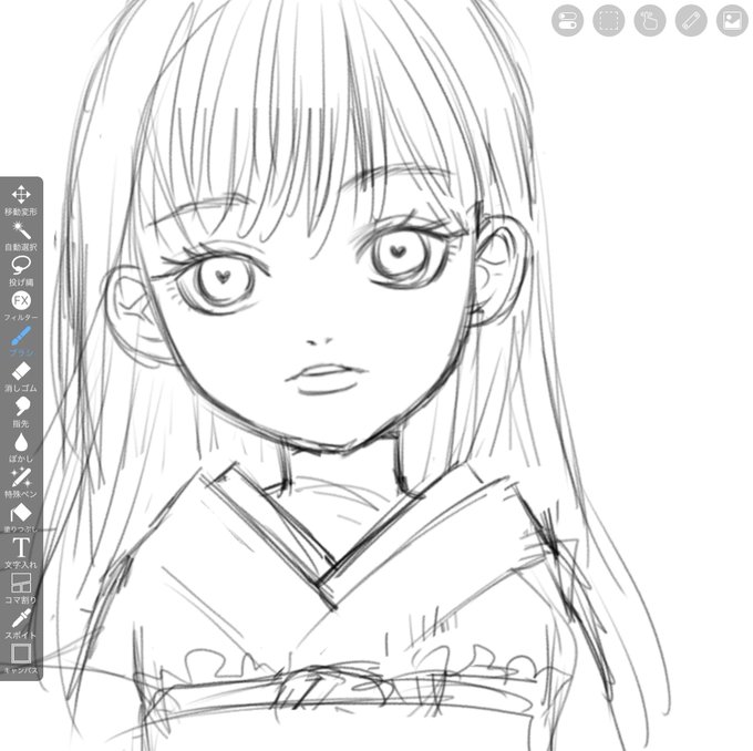 線画、見てたら結局色々直してしまった・・・。 左がビフォー、右がアフター。 帯と目を大きくして位置をずらしただけです。 結構印象変わるでしょ? #イラスト好きさんと繋がりたい #着物女子 #少女イラスト
