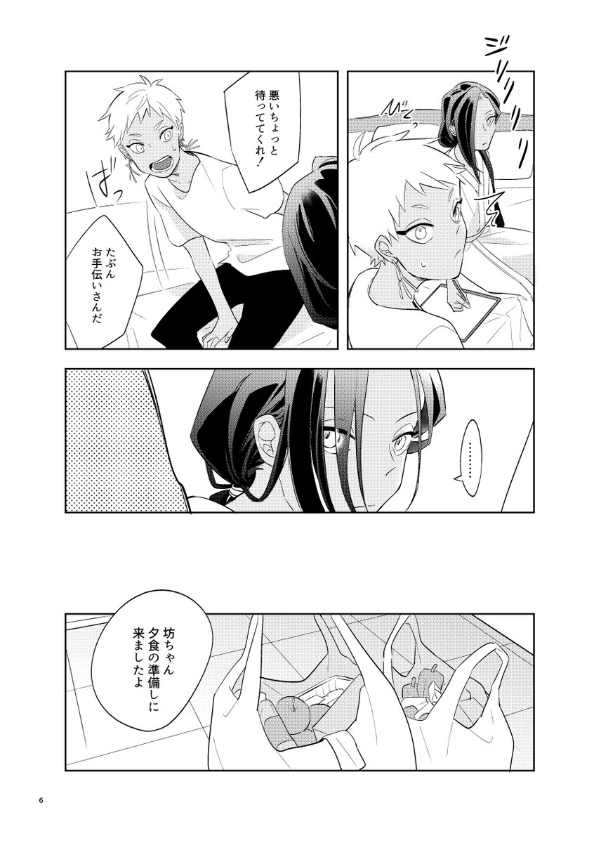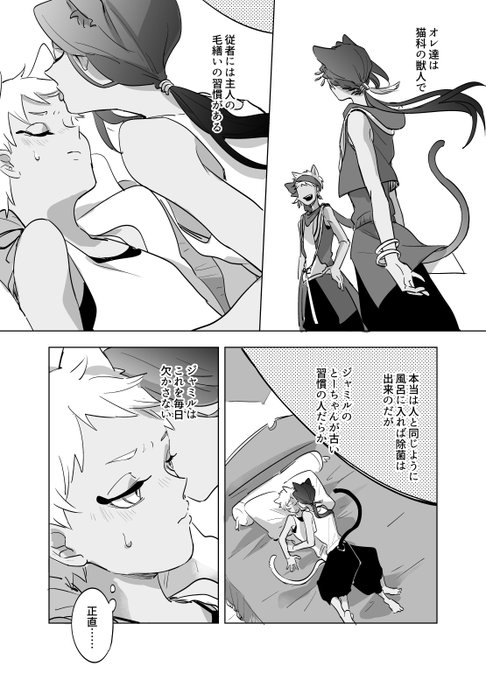 12月18日<あかりの下のじゃれあい3> カリジャミ新刊「君には自由の花束を」 A5/28P/全年齢/400円 西2フ54a qua* 6章で☀️が自分のために怒っていたことを🍩から聞いた🐍の、実家での二人の話です。 ※サンプル程度のモブジャミがあります。 【通販】ecs.toranoana.jp/joshi/ec/item/… サンプル(1/3)
