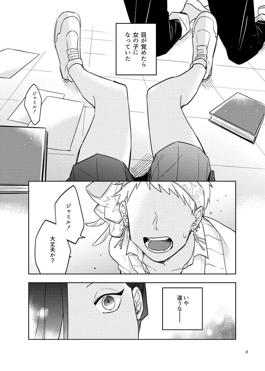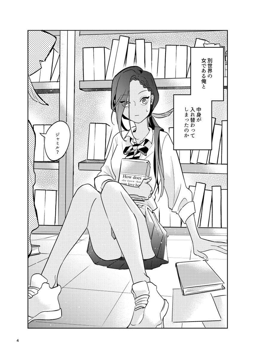 5月3日 スパコミ1日目 東4 お60a カリジャミ新刊「How does she know that you love her」 A5/28P/全年齢/400円 ※後転生(?)女体化 自分が女の子である世界線にのジャミル♀と原作軸のジャミル♂が入れ替わった系のお話です。 【通販】ecs.toranoana.jp/joshi/ec/item/… サンプル(1/3)