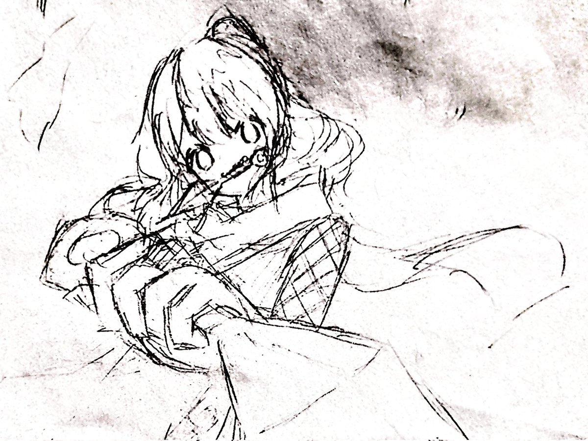 #イラスト #illustration #女の子 #落書き #シャーペン #アナログ絵 #絵柄が好みっていう人にフォローされたい #無名絵師 クナイ咥えてる子がかきたかっただけ