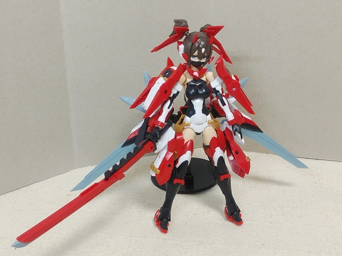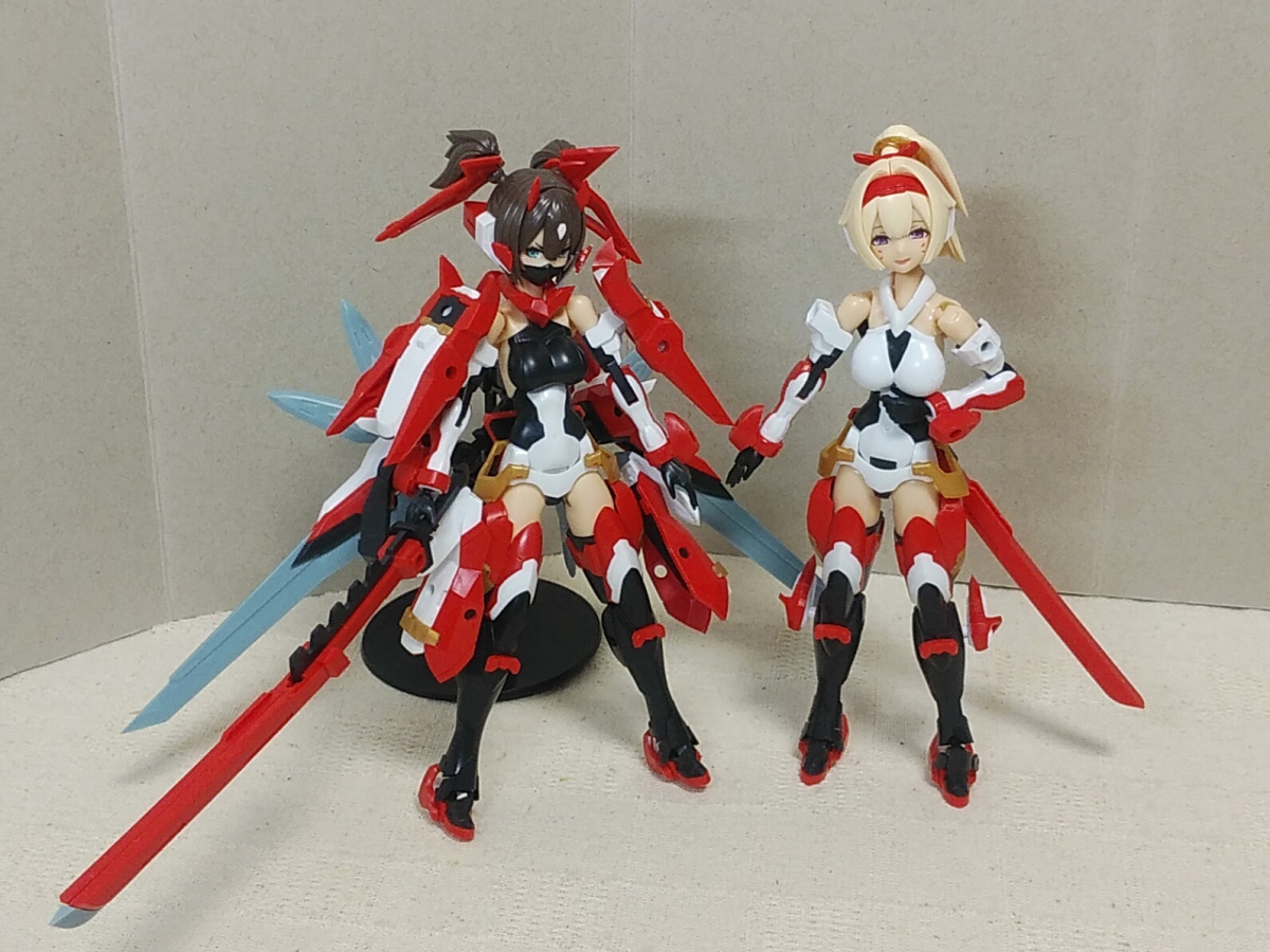 5周年おめでとうございます! 最初のグラップルんが妙に可愛くて弓兵姐さんのポニテに負けて肌色腕脚のためにマジ子さんそして朱羅は侍モードが完成形なら忍者さんも。。という成行き。 カスタムパーツ売りも嬉しいのでもっといろいろ増えるといいな。 #自宅で祝うメガミ5周年 #メガミデバイス