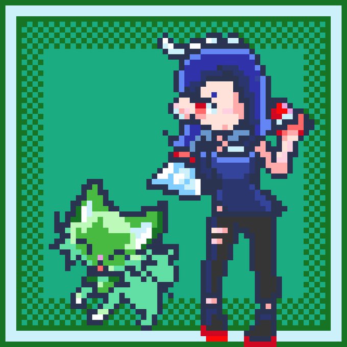 Shiver&Sprigatito #Pokemon #Splatoon3 #Dotpict #pixelart #Sprigatito #Shiver