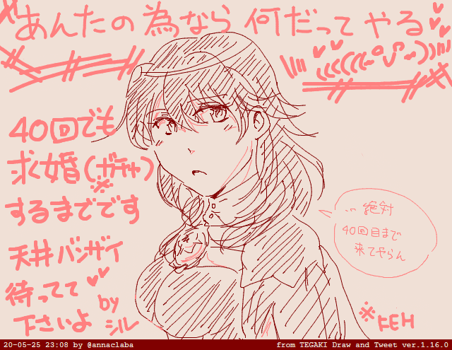 3 3 たぶん明日には判明するだろうけど、もし違ってても今だけ夢見させてくださいよラクガキ #tegaki_dt 20/07/05 22:08