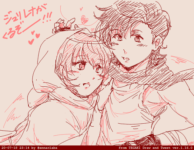 5 11 ジュリレナ(描くの久々過ぎて色々忘れてる) #tegaki_dt 20/07/18 23:14