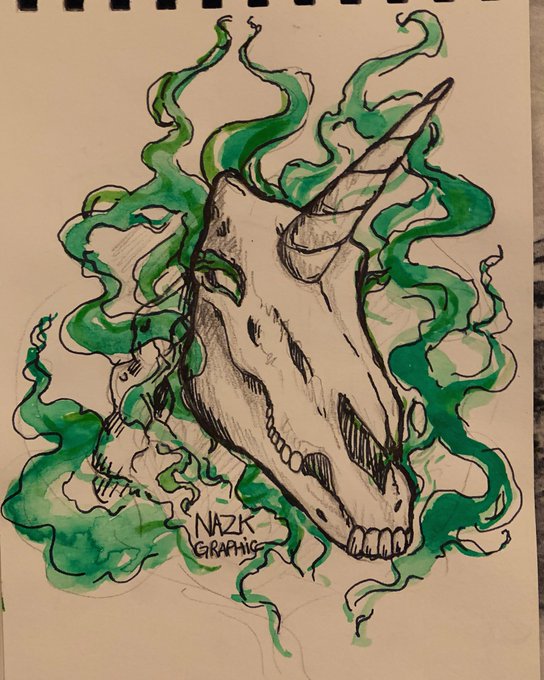 Day 2 of Magictober, Unicorn 🦄💀✨ #aisarinemagicink #inktober2020 #magictober #unicorn #drawing #ink #illustration_daily #blackink #challenge #green #skeleton #spooky #watercolor