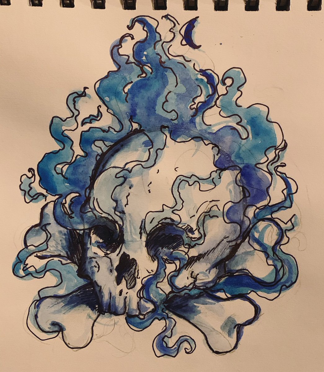 Day 4 of Magictober, Bones ☠️✨ #aisarinemagicink #inktober2020 #magictober #magicartchallenges #skull #bones #blue #flame #drawing #ink #illustration_daily #blackink #challenge #creepy #dibujos #skeletton #art #spooky #watercolor #illustration #sketch