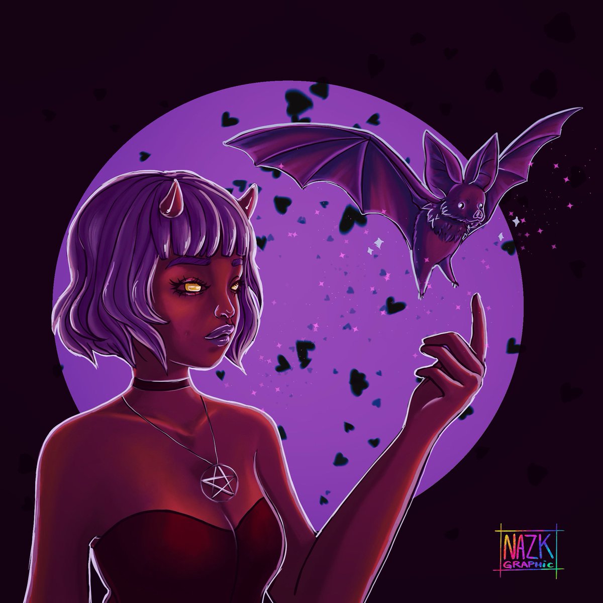 Day 15 of Magictober, Familiar 🦇✨ #aisarinemagicink #inktober2020 #magictober #familiar #witch #demon #bat #chauvesouris #purple #creepy #spooky #drawing #illustration_daily #digitalart #digitalpainting #challenge #creepy #dibujos #art #illustration