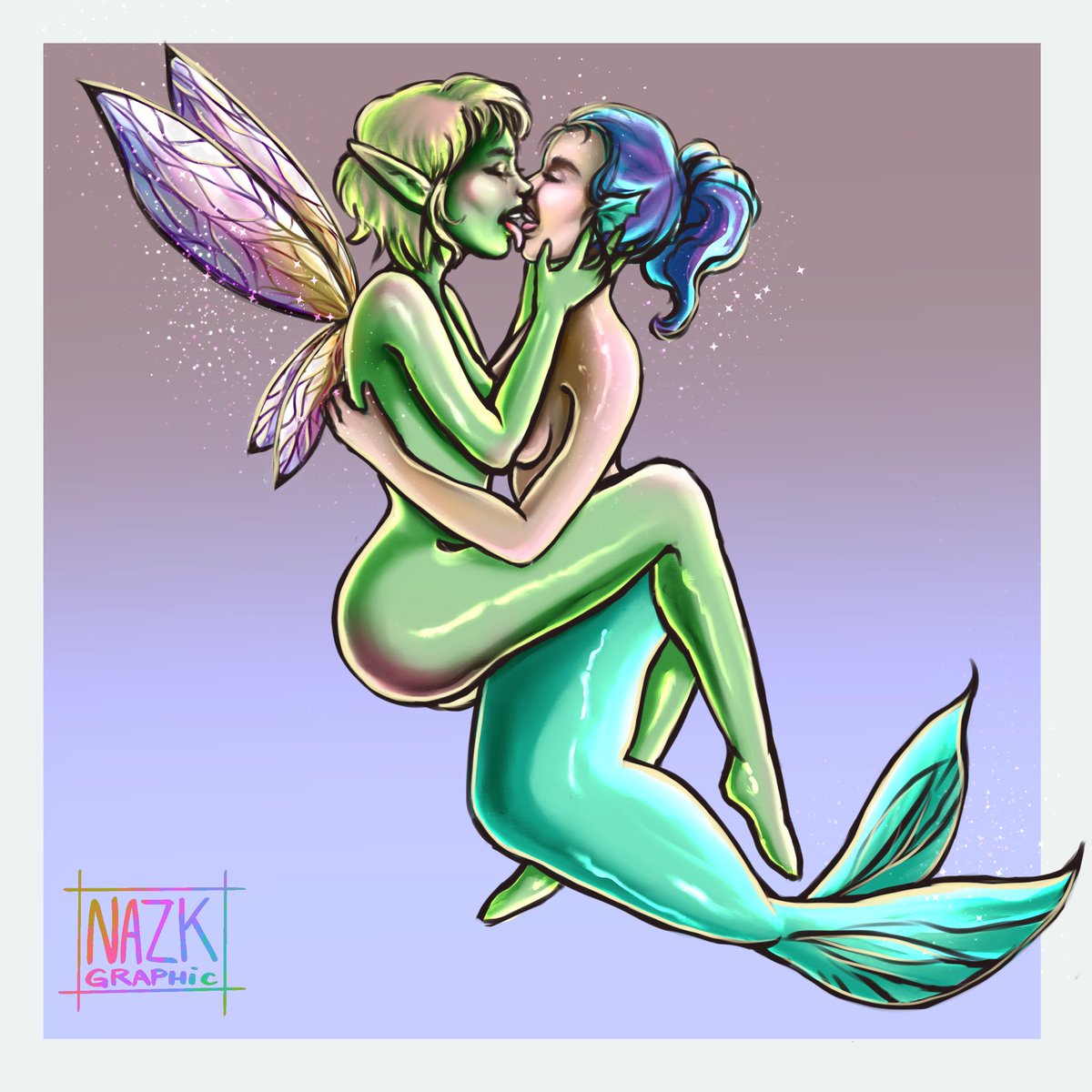 Bon après avoir failli abandonner ce challenge du magictober, j’ai essayé de me motiver en combinant les 3 derniers thèmes encore 😅 Day 23, 24 & 25, Nymph, Wings & Fish 🧚🧜♀️✨ #aisarinemagicink #inktober2020 #magictober #nymph #siren #fairy #love #lesbian #kiss