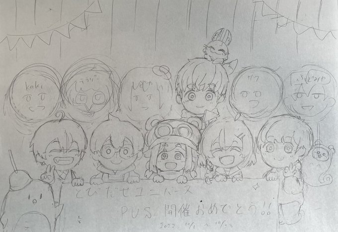とびユニPUSおめでとうイラスト下書き中、🏹さんいないことに今気付きました…w 13人いるって確認したはずなのに… しん様ごめん……ww どうしよう…どこに入れようか… #とびユニ自由帳