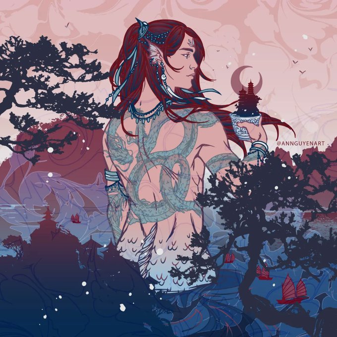 🧜♂️🐉🌊 Today's #mermay is a #WIP for the King of Cups from the Minor Arcana. The King of Cups is a wise and diplomatic leader. He is in control of his feelings and accepts them, without ever letting them overwhelm him. #mermay2022