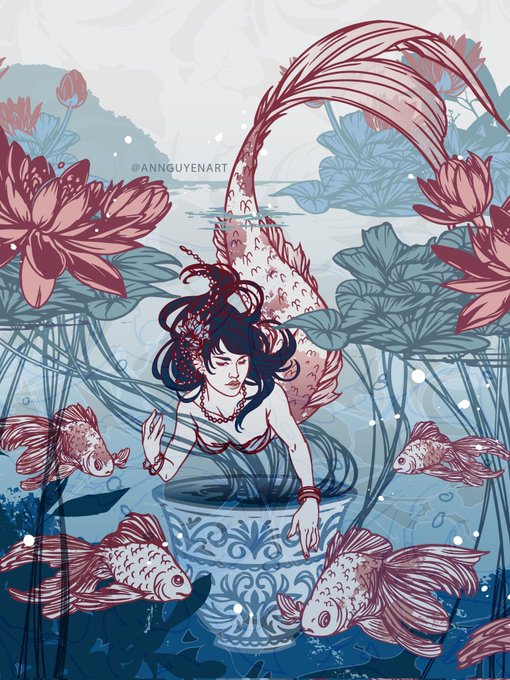 🧜♀️🌿💙 Some mermaid merch I made with my past #Mermay art. All of these goodies are available in my store annguyenart.com