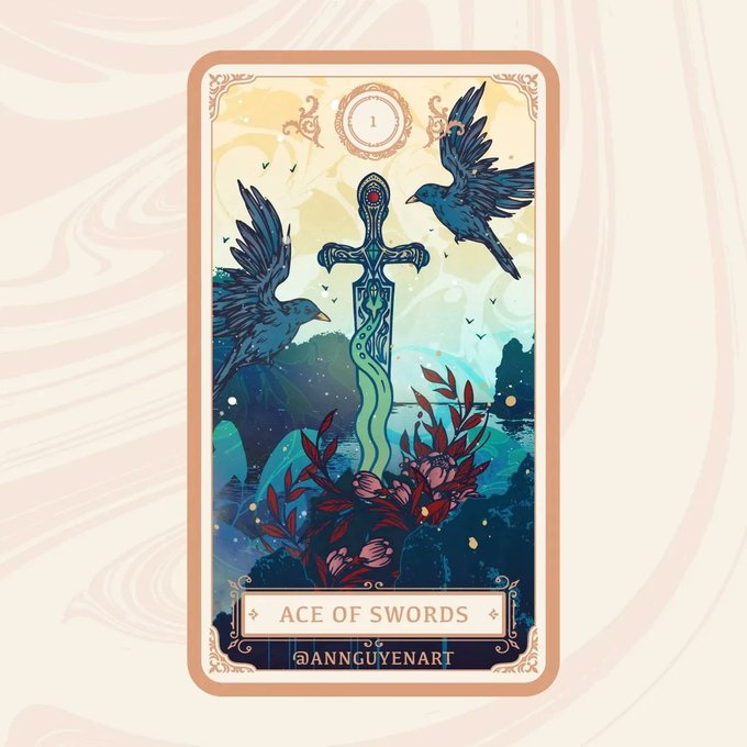 🌿🗡🌌 Here is the Ace of Swords for #swordtember ! When drawn, the Ace of Swords may suggest a breakthrough or mental clarity. As I was creating this card, I was inspired by the sword Excalibur, a symbol of immense power and sovereignity. #tarotcard #tarot #tarotoftheday
