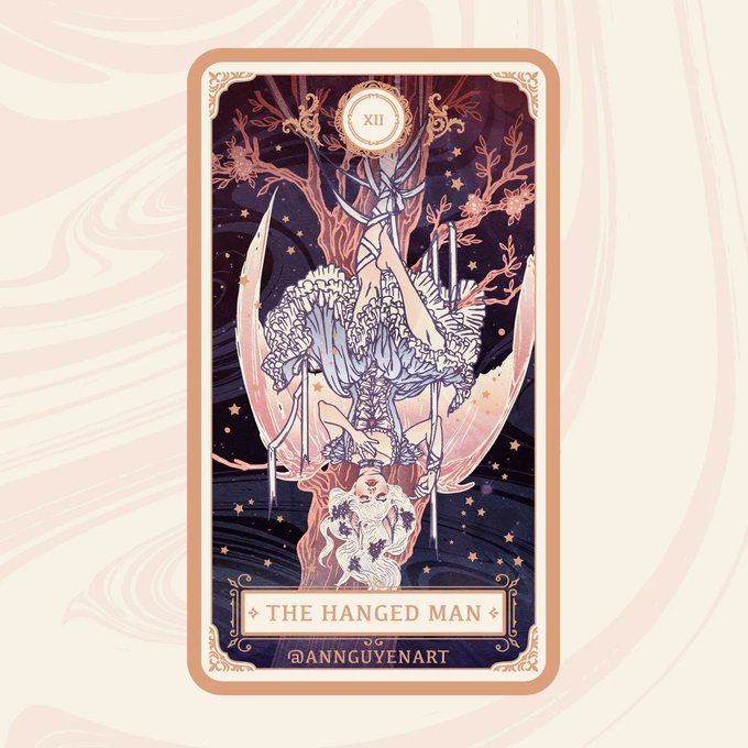 🦇✨🎀 Spooky season is upon us! Today's card is the Hanged Man (XII), the twelfth Major Arcana. I was inspired by vampire lore and the Rococo era for this card's illustration. Like Marie Antoinette meets the Bride of Dracula. #inktober #inktober2022
