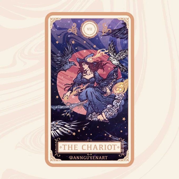 🦅🌙🌌 Today's highlight is the Chariot (VII) from the Major Arcana. Usually associated with willpower, determination and strength, drawing this card means you are moving forward in a good direction. #witchtober #inktober #inktober2022