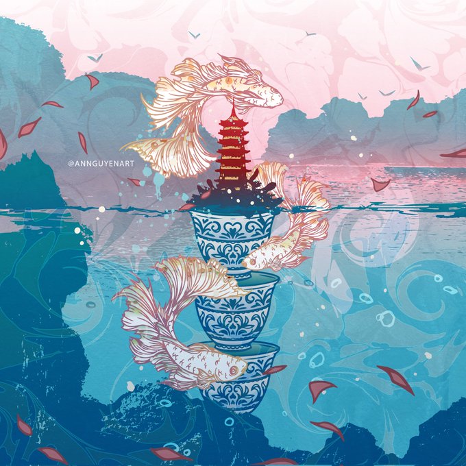 🐉🌊🍵 Guess which Minor Arcana card this art is for! Here's a hint: When drawn, this card can mean a reevaluation of a situation or a deep state of meditation and self-reflection. Let me know your answer in the comments! #inktober #drawtober