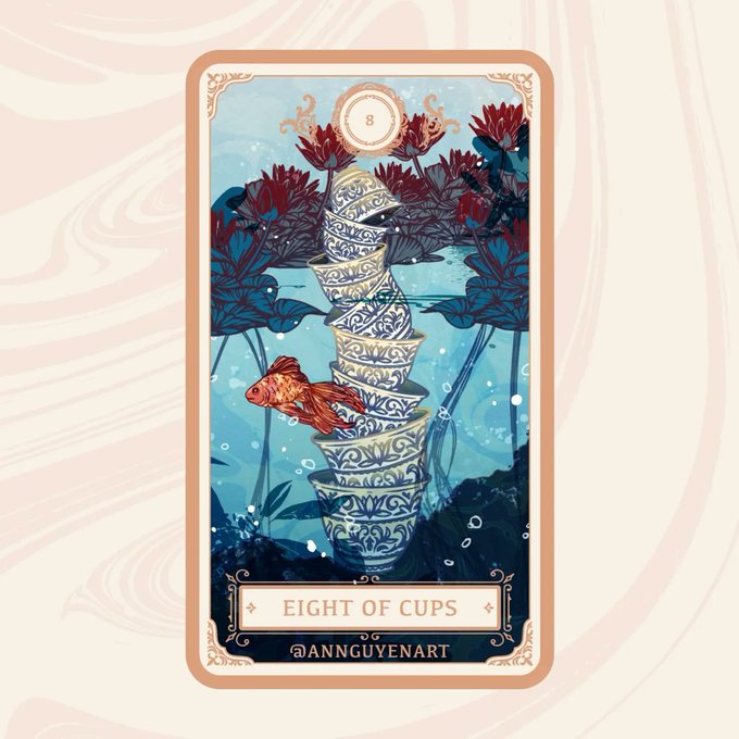 🐟🌿🍵 Unveiling the Eight of Cups! When drawn, this card can mean a time of transition, perhaps walking away from something that no longer benefits you anymore. #inktober2022 #drawtober #drawtober2022 #witchtober #Inktober