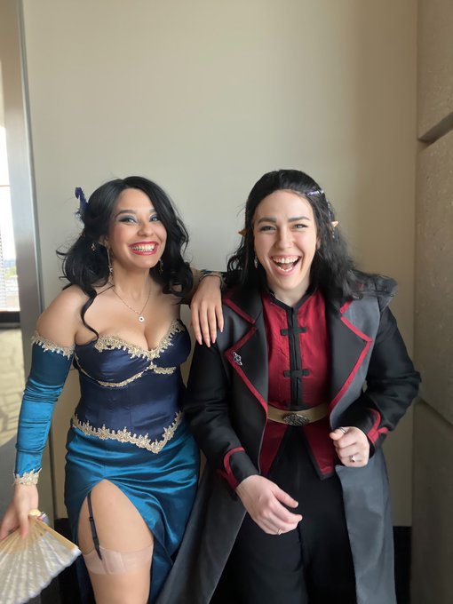 In honor of the release of Kith And Kin I present to you more twin content with my favorite sister @deco_summer Characters by @LauraBaileyVO and @VoiceOfOBrien #CriticalRoleCosplay #CriticalRole #kithandkin #vaxildancosplay #vexahliacosplay #vexandvax