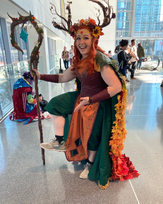 I know canonically Keyleth’s mantel is only leaves but I added some flower because I like to think the blossoming of her leadership manifested in just such a way @Marisha_Ray @CriticalRole #CriticalRole #CriticalRoleCosplay #nycc2022 #nycccritters