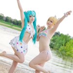 Summer Idols! Rin: @enjucosplay765 Photos: @yukkikuma_cos #cosplay #Vocaloid #Vocaloidcosplay #hatsunemiku #kagaminerin #hatsunemikucosplay #rincosplay #swimsuitcosplay #bikini #kagaminerincosplay #mikucosplay #コスプレ #初音ミク #コスプレ女子 #水着 #水着コスプレ