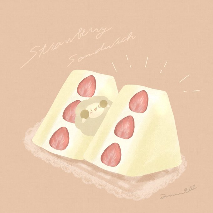 ほのぼのひつじといちごサンド #イラスト #ゆるいイラスト #サンドイッチの日 #イラスト好きな人とつながりたい #絵柄が好みって人がいたらいいなぁ