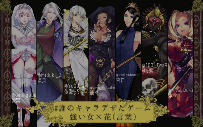 #誰のキャラデザだゲーム 【テーマ】強い女×花(花言葉) 私が〝デザイン〟をしたのは何番かリプツリーで投票よろしくお願いいたします!!💋 私は5番のストレリチアさんを描かせて頂きました☺️ (答え合わせは明日27日21:00~です!)