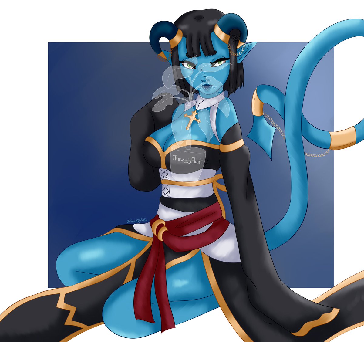 Hey Darling, are you looking for some fun tonight? I'm still looking for a name for her so if you have suggestions, put them down below 👀 #dnd #dndart #characterdesign #ttrpgfamily #tiefling