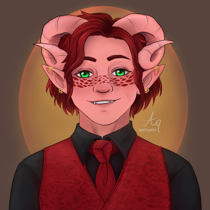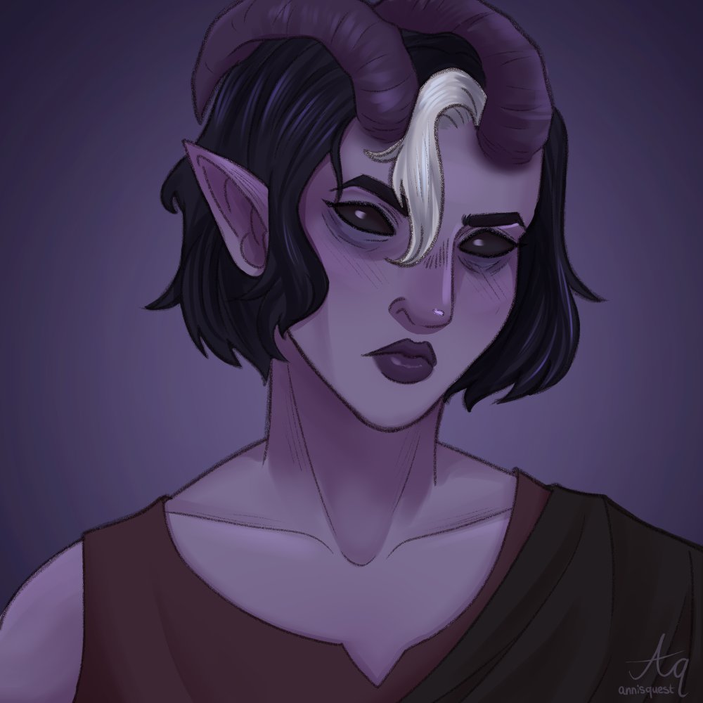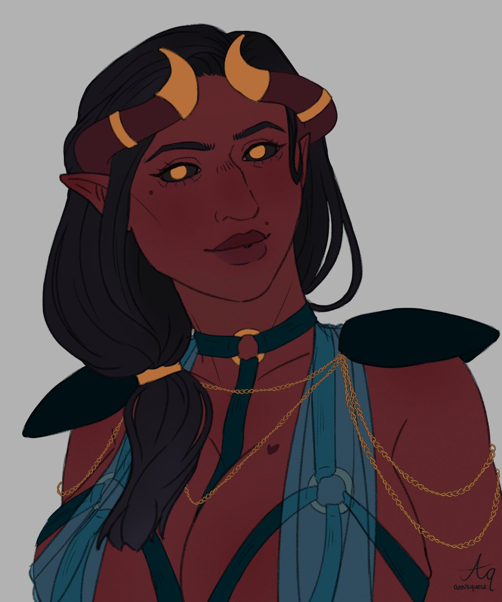 Quick and messy Tiefling for Day 3 of #Grisfeast Honey! I'm actually very happy with the outcome and especially the tiny honeybee :D #tiefling #dndart #dnd #digitalart #Honey