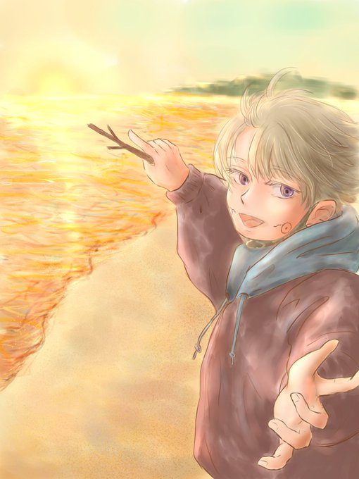 記録用 約1年前に描いたの見つけたので少し手直しして載せます 今となってはどうやって描いたのかエフェクトとかも覚えてないです💦 懐かし〜 アニメEDの海辺をイメージした夕陽とげぴ #呪術廻戦ファンアート
