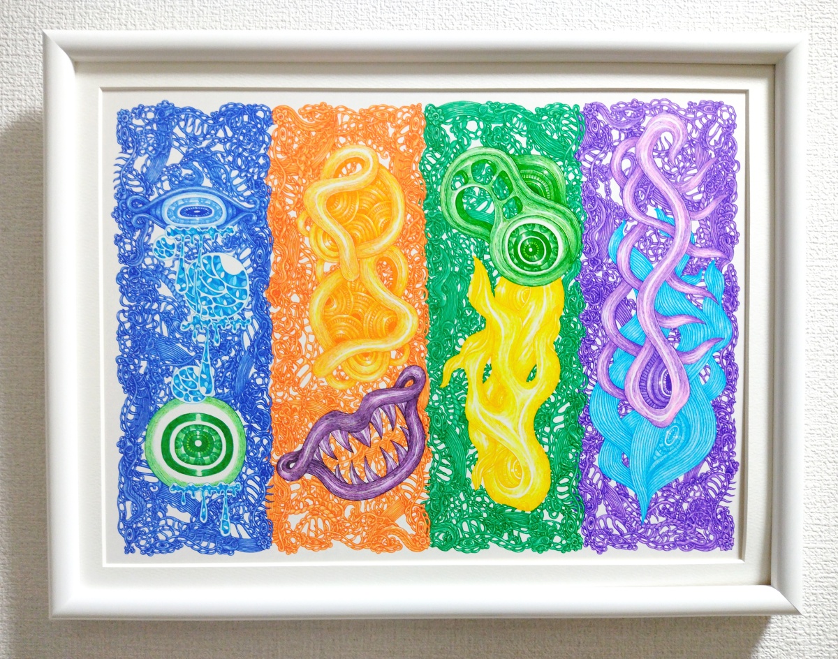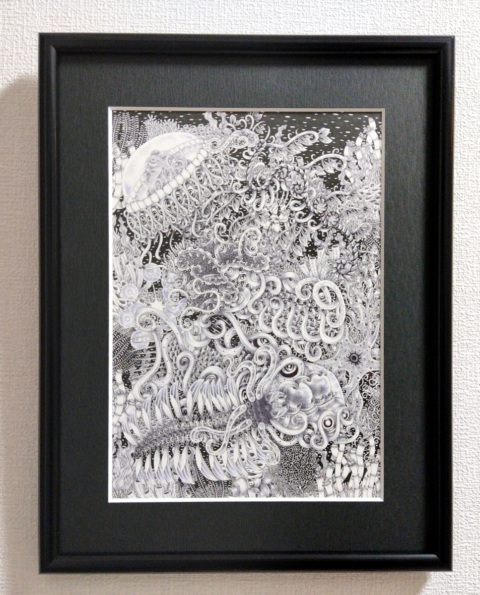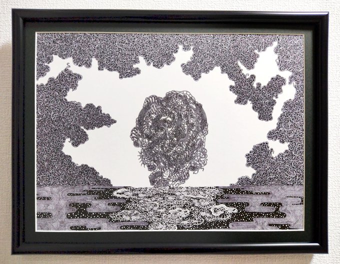 メイン作品額装しました。 〜〜〜 鬼気個展 イノョワニ1ョ 会期:2023.7.23(日)-29(土)※休廊7.26(水) 13:00-19:00(最終日17:00まで) 入場無料 会場・主催:アートスペース銀座ワン facebook.com/events/1193159… 企画:TEAM-TAN 〜〜〜 #ペン画 #ボールペン画