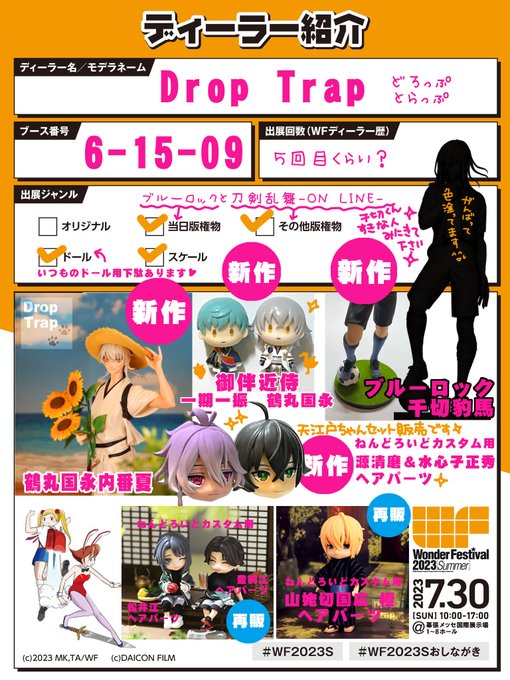 卓番6-15-09 Drop Trap 『刀剣乱舞-ON LINE-』『ブルーロック』 画像にあるものは全て未塗装未組み立てのガレージキットになります。山姥切国広極パーツ以外は全てデカール付属。お値段やサイズ詳細はツリーに繋げます。よろしくお願いいたします🙇♀️ #WF2023S #WF2023Sおしながき
