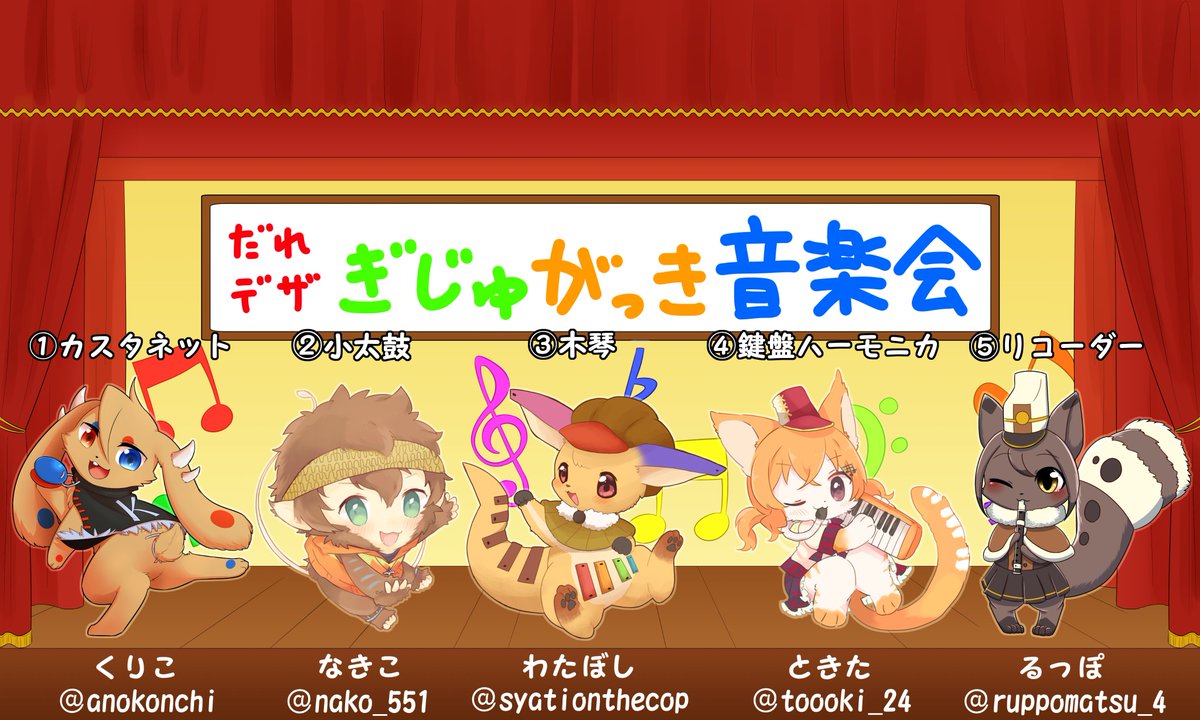 #誰のキャラデザだゲーム 楽器の擬獣化で念願の誰デザゲームやらせていただくことができました!メンバー豪華すぎ恐縮です。 リプ先で私がデザインしたと思う子に投票お願いします!