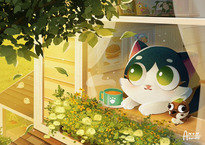 Chilling time🐱☕️🌳🍃 น้อยมากที่จะใช้สมองมานั่งยิง perspective ไม่ด้วยว่าถูกมั้ย😂 #procreate #digitalpainting #มาอวดโฮมุ้