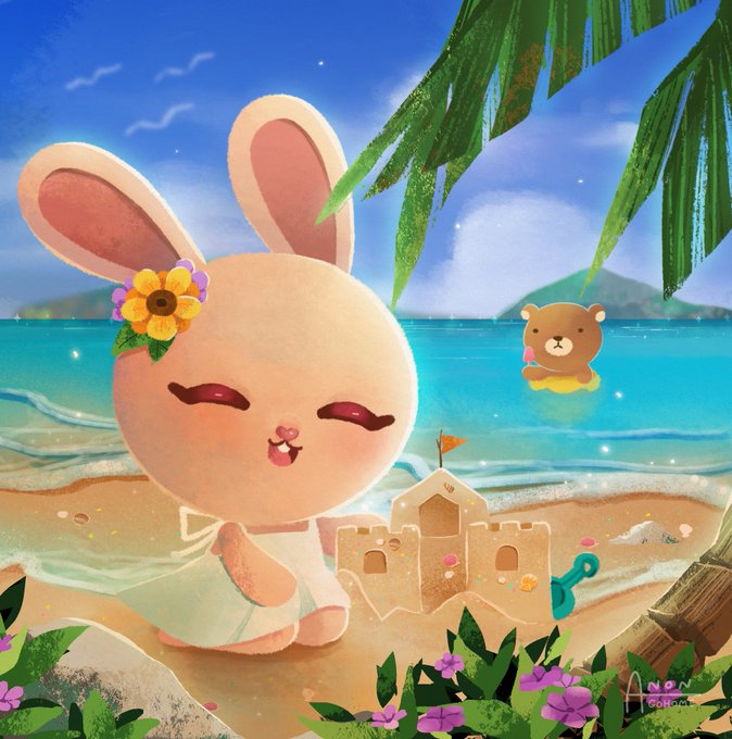 อากาศร้อนพาน้องแช่น้ำหน่อย💤🌼🍃 #procreate #digitalpainting #digitalart #cuteart #cuteartwork #rabbit #nature #paintings #flower #artworks #ophelia