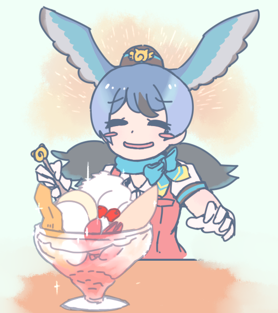 これは羽をかっぴらいてパフェを喰らうリョコ