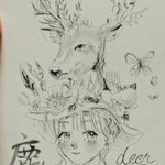 鹿と花と女の子 やっと絵がかけて嬉しい… #お絵描き #イラスト好きな人と繋がりたい #イラスト