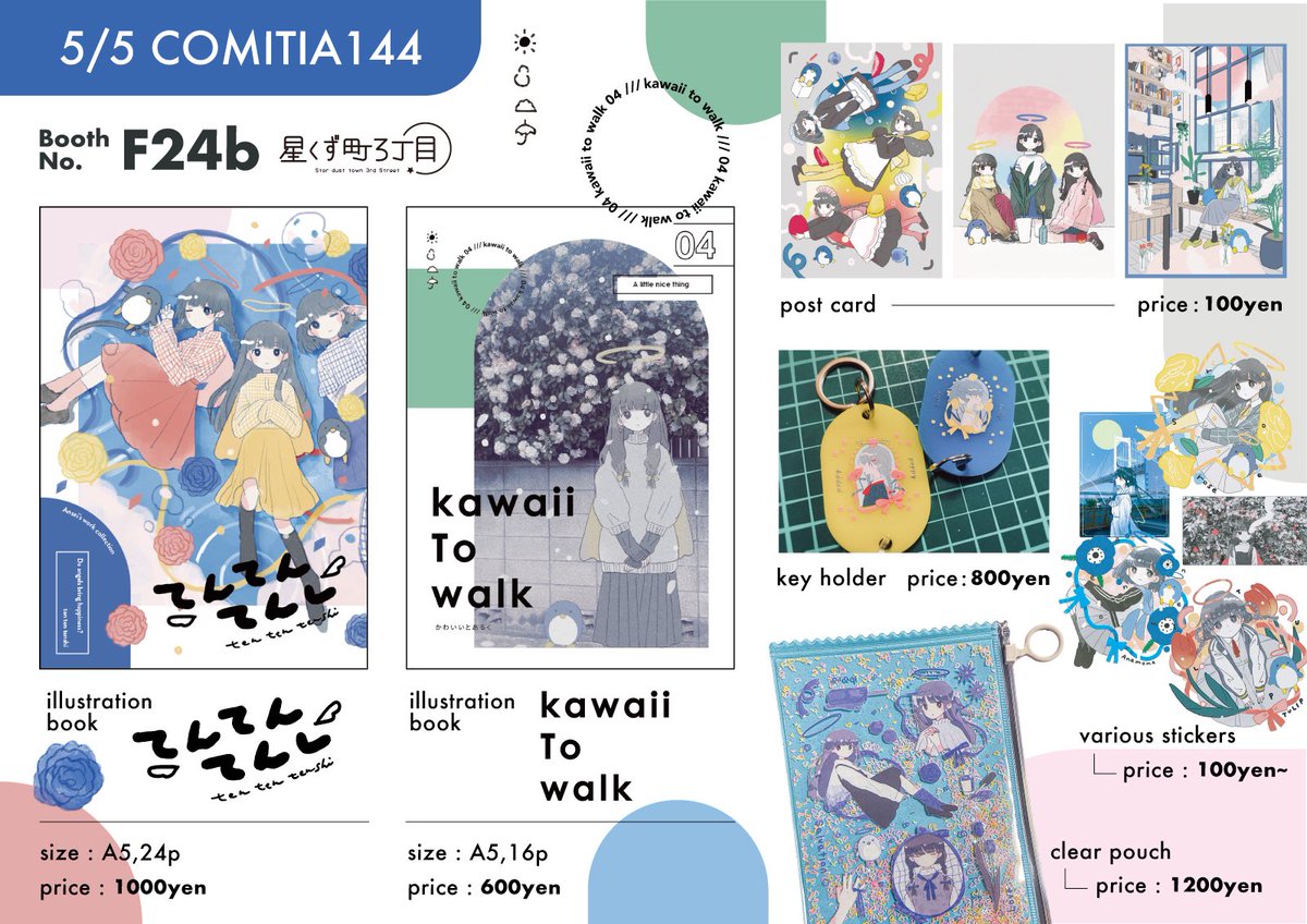 5/5のコミティアのお品書きです! イラスト集とポーチを新しく作りました! よろしくお願いします! #コミティア144 #COMITIA144