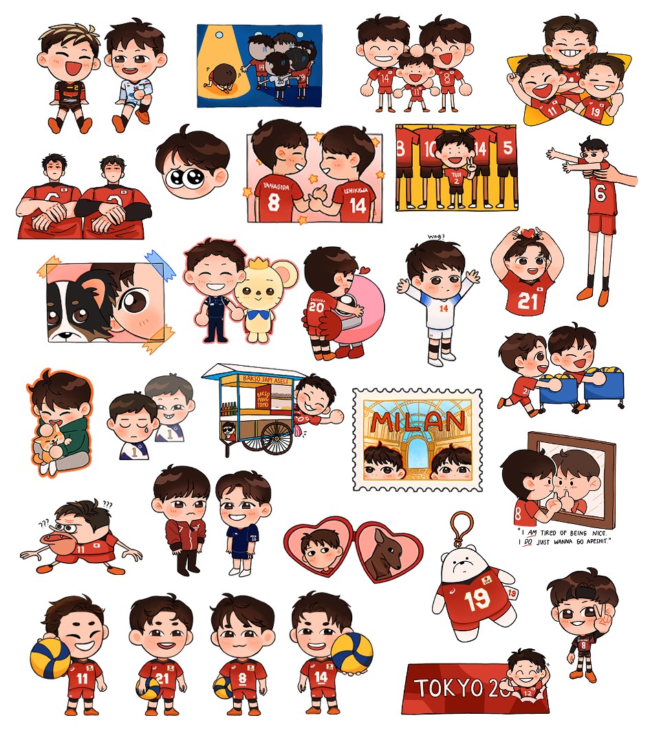 100 259 i made rjn stickers hehe #龍神NIPPON #石川祐希 #高橋藍 #宮浦健人 #西田有志 #男子バレ絵部 21/11/24 22:25