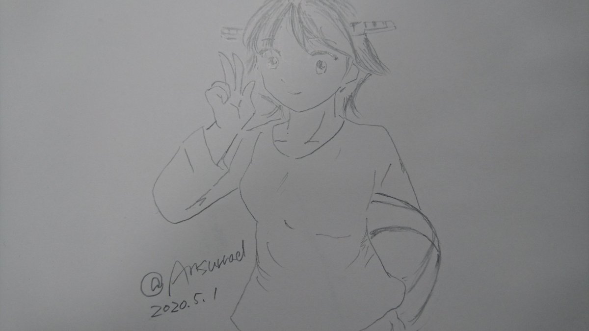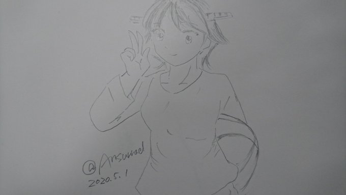 #艦これ版深夜の真剣お絵描き60分一本勝負 #艦これ版真剣お絵描き60分一本勝負 20200408 比叡「艦これ7周年、新たなる改装に気合いいれて~頑張ります❗」 #艦これ7周年 #比叡 #比叡新たなる改装
