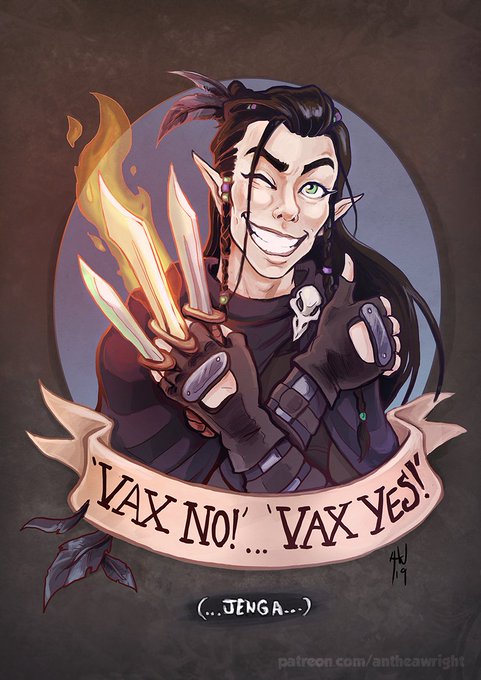 Congrats #criticalrole for breaking the world! Realized this pic was kinda relevant! My favorite overly confident rogue who doesn't know when to..not charge in lol. Vax'ildan always #criticalrolefanart #VoxMachina #vaxildan #rogue #daggerdaggerdagger @VoiceOfOBrien