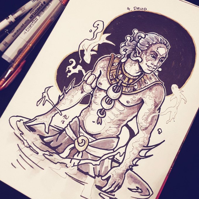 All I wanted to do in #pillarsofeternity #Deadfire was make this hansome fish happy. Tekehu was a gift @willingblam @WorldofEternity #inktober #dndrawtober #druid #watershapers #waterbending #huana #instasketch #markersketch #rpg #gaming #pirates #tekehu
