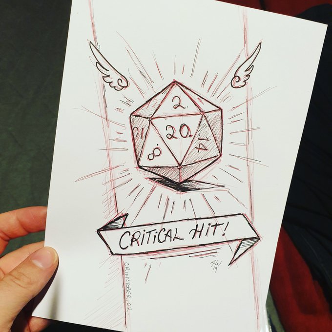Continuing trying to keep under half hr & not over stress myself - focusing on doing somethin small & not the complex concepts like last year. #CRinktober day 2 'campaign 1 or 2' Was originally gonna be the golden snitch. #CRinktober2019 #inktober2019 #criticalhit #d20
