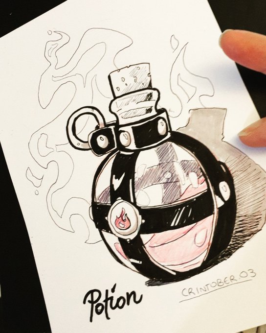 Havent gotten any further yet in #CRinktober2019 but tomorrow is looking promising. Every drawing i manage is a win at the moment! #potion #inktober2019 #sketchbook